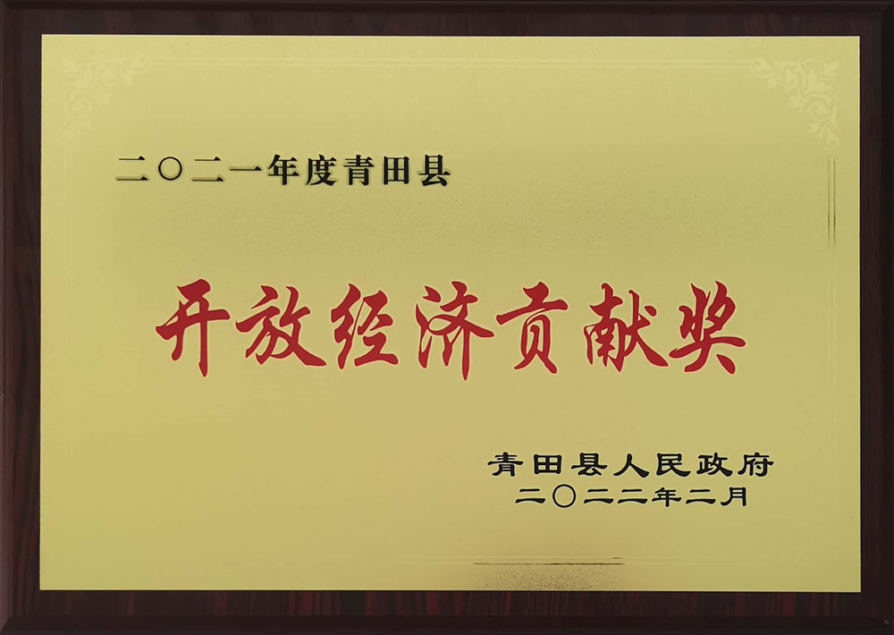 青山钢管已连续多年获得青田县工业强县建设 “二十强企业”荣誉称号。2021年期间,青山钢管综合实力更是跃上新台阶,产品出口额实现良好增长,为青田县外向型经济做出了突出贡献,为此青田县人民政府特为青山钢管颁发“开放经济贡献奖”。
