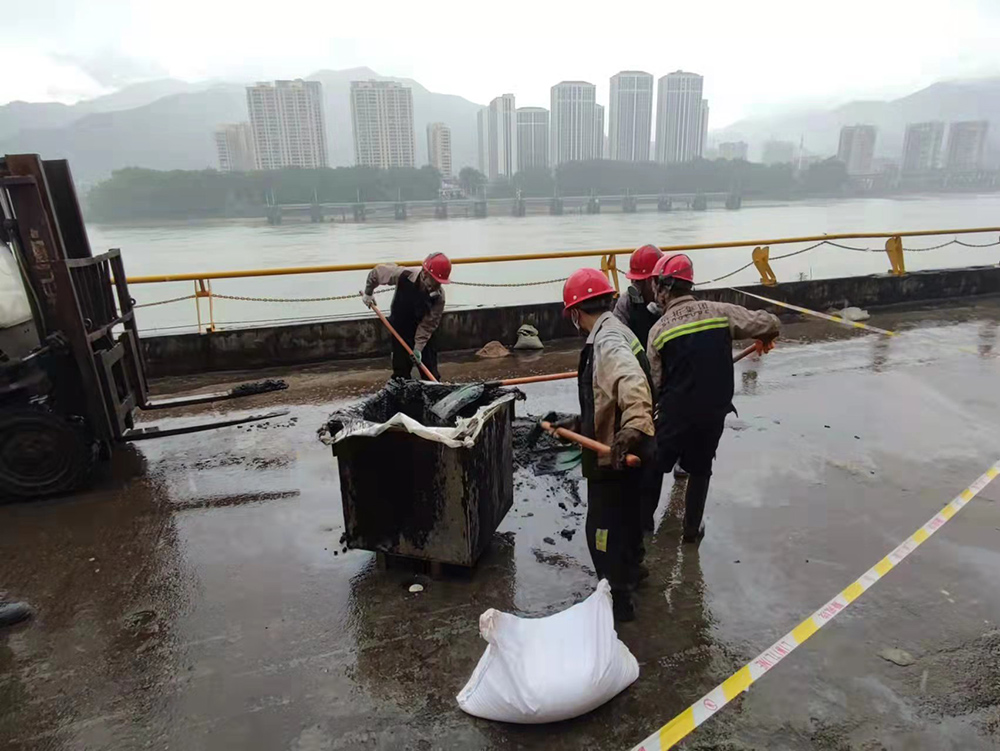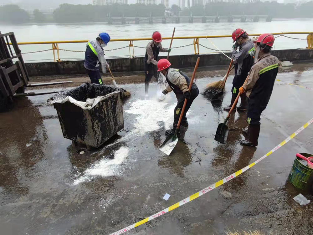 此次演练模拟了青山钢管危险废物在雨天转运至危废仓库途中,部分含油酸洗残渣倾倒路面,可能造成瓯江水域污染,威胁江水水质。事故发生后,青山钢管启动突发环境事故应急预案,组织各相关部门进行处置。演练过程紧张有序、演练人员配合默契、抢险救援迅速有效。