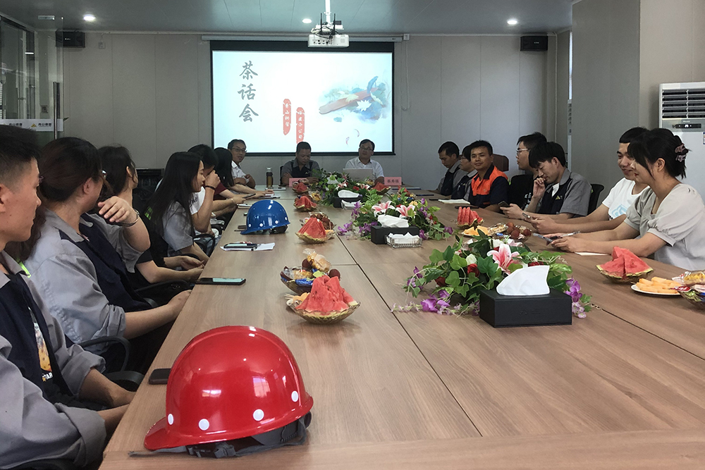 7月22日下午,青山钢管福建分公司二楼会议室热闹非凡,公司骨干员工茶话会正有条不紊地进行着。总经理蔡勇强、常务副总经理何建珍、综合管理部负责人彭洪林出席了此次骨干员工茶话会活动。