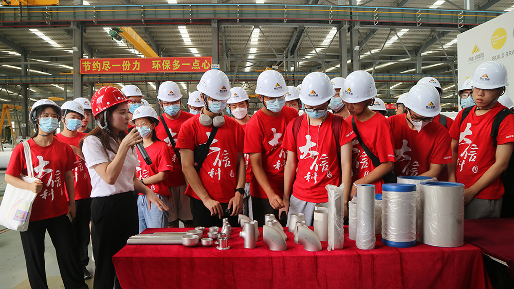 师生们先后参观了办公楼展厅、焊管大管生产车间、生产数据展示中心以及党群活动服务中心,在公司工作人员的带领与解说下,通过观看企业宣传片、实地走访车间观摩生产设备与产品,加深了对不锈钢产品的认识以及对公司的了解。对公司先进的生产设备和生产工艺、优质的产品和服务表示认可。