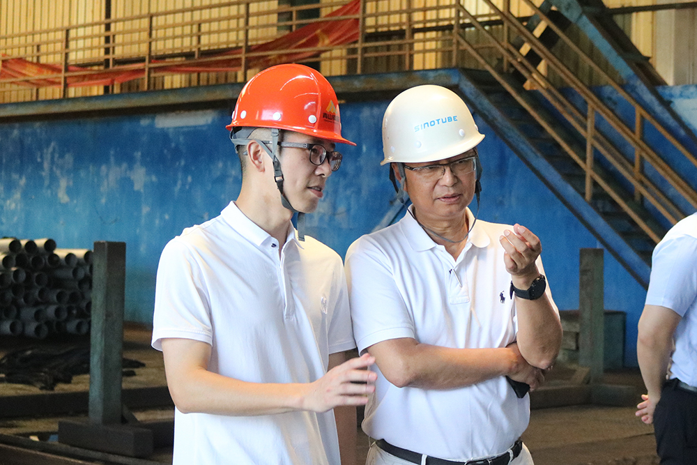 吴晓波一行人通过实地走访车间,详细了解了不锈钢无缝钢管的生产工艺和生产过程。在随后的座谈会上,张路遥董事长对公司的企业概况、组织架构、发展战略等多方面进行了详细介绍,双方就人才培养、企业文化、技术创新、未来发展规划等方面展开深入交流和探讨。