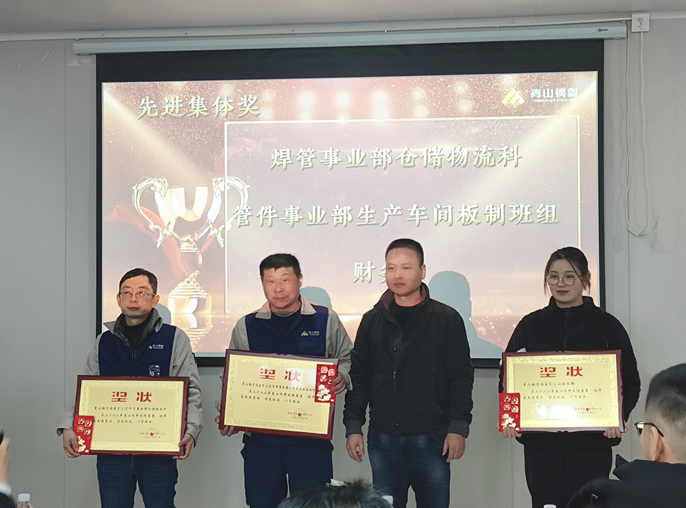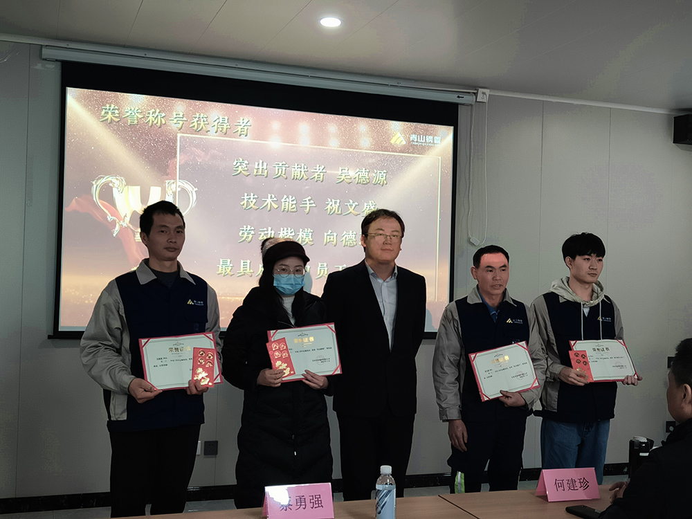 会议伊始,青山钢管福建分公司总经理蔡勇强上台致辞。他总结了2022年度在工作中取得的成绩,向辛勤工作、努力付出的全体员工致以由衷感谢,并致以节日祝福,共同展望2023年工作。本次先进表彰大会2022年度荣誉称号获得者4名、先进个人14名、3个先进集体,由领导上台为优秀先进颁发荣誉证书,获奖员工代表纷纷表示,获得的荣誉是他们立足本职、完善自身的不竭动力,将会更好地在未来新征途上再立新功。