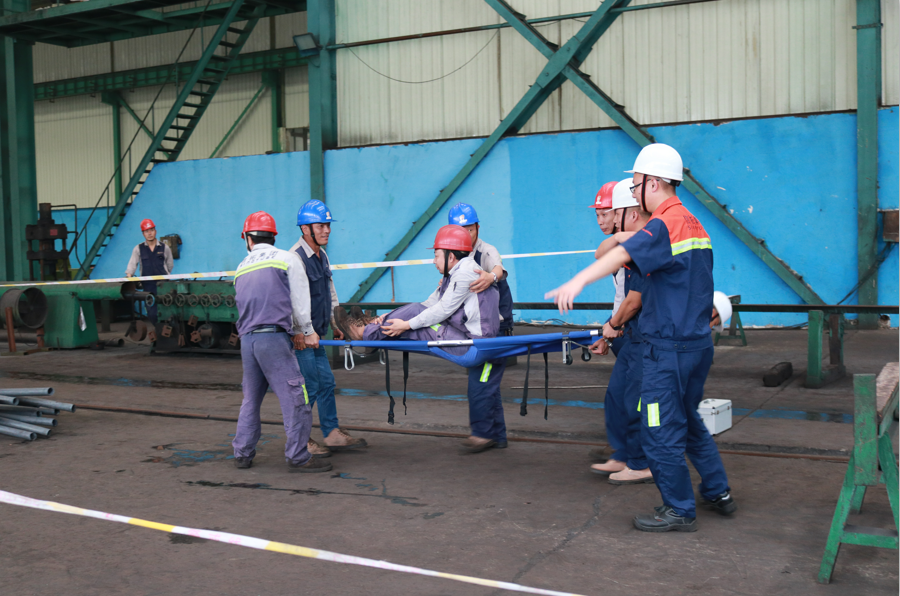(通讯员 陈雪琴)为进一步贯彻国家安全生产方针,加强安全生产管理。浙江青山钢管有限公司根据“安全生产月”的总体安排,于2018年6月2日组织举办了机械伤害事故应急演练,此次演练由公司安环部负责组织,安环部经理孙朝晖和无缝管事业部总经理文德洪主持应急演练工作,各部门、车间积极配合,公司班组长以上人员参加观摩,共同完成机械伤害事故应急演练。