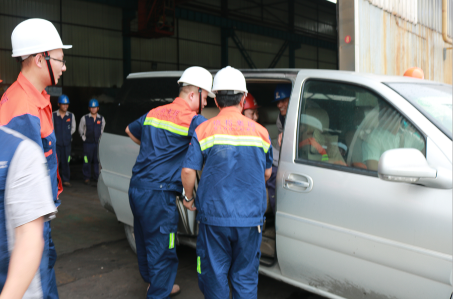 演练前,公司于四楼会议室进行了机械伤害事故应急演练培训会议,明确了机械伤害演练预案、策划好救援路线、配备救护人员,并分配好各部门的救援职责。演练在公司三车间矫直班组开展,在演练过程中,伤者模拟在矫直过程中脚被龙门行车撞伤,造成机械伤害。现场抢险小组立即负责抢救和转移受伤人员,并准备急救车辆,对演练过程进行拍摄记录并保存。